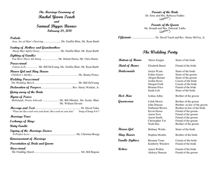 Among the myriad of wedding program kits and free wedding program templates out there, i found an excellent wedding program sample with a few wedding program ideas as well. Get information on how to make the best wedding programs here and use our if you're having trouble finding the right words or coming up blank when you think of the words with which to thank your guests, here are a few samples. Management of items to be taken to ceremony and reception picked up before the wedding (guest book, ketubah, marriage license, programs, menu cards, cake knife. We have free samples / demo versions of all of our templates for you to test out first.