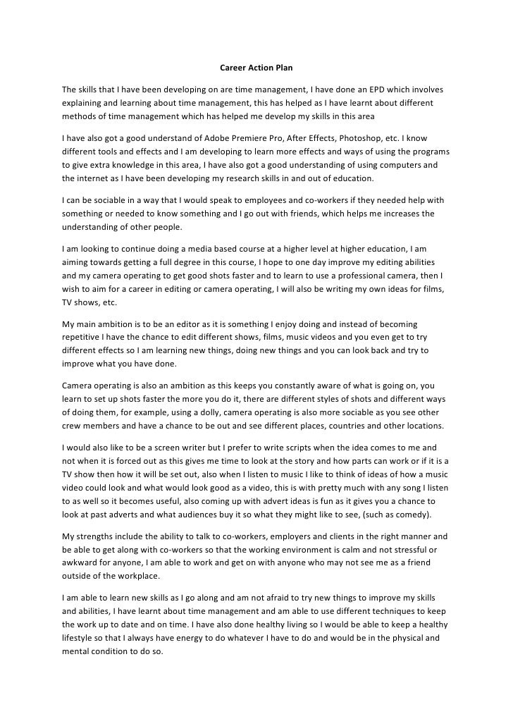 A career plan is the goals with action plan that leads towards goals. The year level associated with a career action plan may be used as a guide for. Use all you have learnt about your skills, interests and values together with the information you have gathered about.