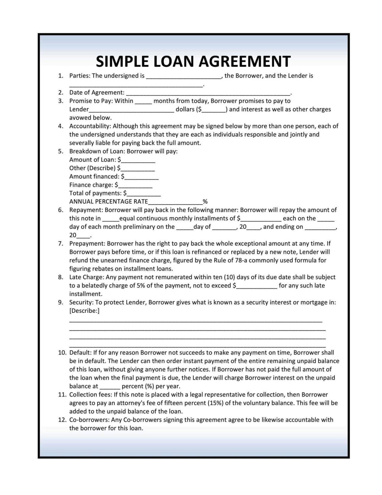 Formats Template For A Loan Agreement excel word pdf doc xls blank Tips: